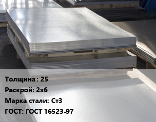 Лист горячекатаный 25 2х6 Сталь: Ст3 ГОСТ: ГОСТ 16523-97