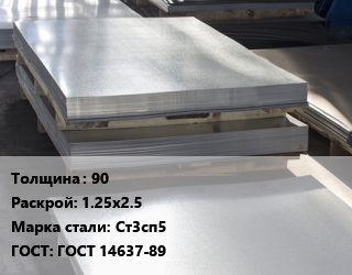 Лист горячекатаный 90 1.25х2.5 Сталь: Ст3сп5 ГОСТ: ГОСТ 14637-89