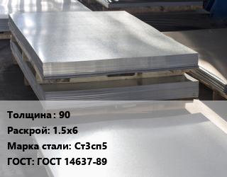 Лист горячекатаный 90 1.5х6 Сталь: Ст3сп5 ГОСТ: ГОСТ 14637-89