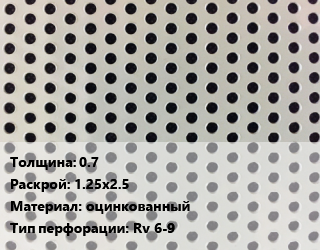 Лист перфорированный 0.7 1.25х2.5 оцинкованный Rv 6-9