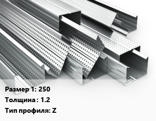 Гнутый профиль 250 s=1.2 Z, метр цена от 434.7 Р / шт, где купить, условия доставки в Гомеле и Гомельской области