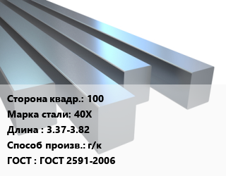 Квадрат стальной 100 Сталь: 40Х L=3.37-3.82 г/к ГОСТ 2591-2006