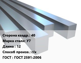 Квадрат стальной 40 Сталь: У7 L=12 г/к ГОСТ 2591-2006