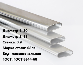 Труба плоскоовальная 30х15 s=0.9 Сталь: 08пс плоскоовальная ГОСТ: ГОСТ 8644-68