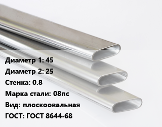 Труба плоскоовальная 45х25 s=0.8 Сталь: 08пс плоскоовальная ГОСТ: ГОСТ 8644-68