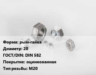 Гайка рым-гайка D=20 DIN 582 оцинкованная М20, кг, по запросу цена от 30 604 Р / кг, где купить, условия доставки в Гомеле и Гомельской области