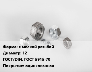 Гайка с мелкой резьбой D=12 ГОСТ 5915-70 оцинкованная
