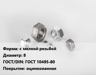 Гайка с мелкой резьбой D=8 ГОСТ 10495-80 оцинкованная