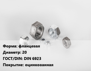 Гайка фланцевая D=20 DIN 6923 оцинкованная