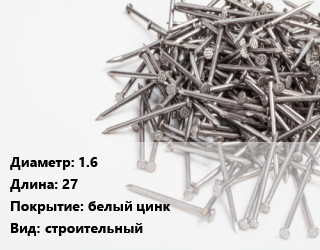 Гвоздь 1.6х27 белый цинк строительный, чертеж 7811-7075, кг цена от 72.77 Р / кг, где купить, условия доставки в Гомеле и Гомельской области
