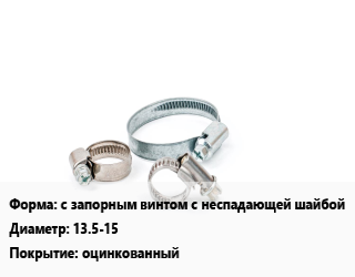Хомут с запорным винтом с неспадающей шайбой D=13.5-15 оцинкованный