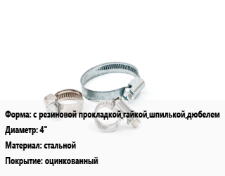 Хомут с резиновой прокладкой,гайкой,шпилькой,дюбелем D=4" стальной оцинкованный, упаковка 1000 шт цена от 48 075 Р / шт, где купить, условия доставки в Гомеле и Гомельской области