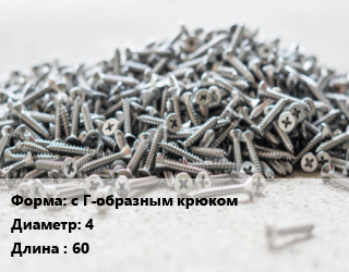 Шуруп с Г-образным крюком 4х60 оцинкованный, упаковка 100 шт, Китай цена от 155.31 Р / кг, где купить, условия доставки в Гомеле и Гомельской области