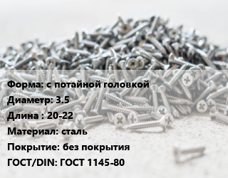 Шуруп с потайной головкой 3.5х20-22 сталь без покрытия ГОСТ: ГОСТ 1145-80