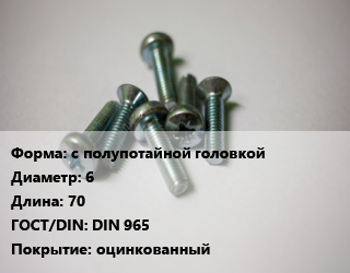 Винт с полупотайной головкой 6х70 DIN 965 оцинкованный
