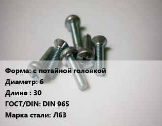 Винт с потайной головкой 6х30 DIN 965 Сталь: Л63, ЧП, цена за 100 шт, кг цена от 1 104 Р / кг, где купить, условия доставки в Гомеле и Гомельской области