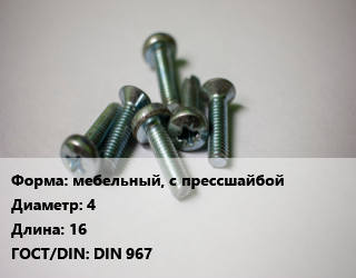 Винт мебельный, с прессшайбой 4х16 DIN 967
