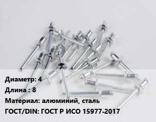 Заклепка 4х8 алюминий, сталь ГОСТ: ГОСТ Р ИСО 15977-2017
