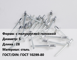Заклепка с полукруглой головкой 5х28 сталь ГОСТ: ГОСТ 10299-80
