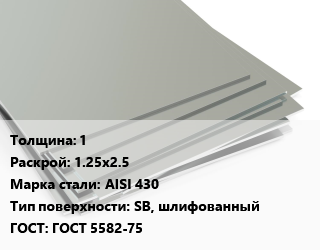 Лист нержавеющий 1 1.25х2.5 Сталь: AISI 430 Тип:SB, шлифованный ГОСТ 5582-75, м2 цена от 2 339 Р / т, где купить, условия доставки в Гомеле и Гомельской области