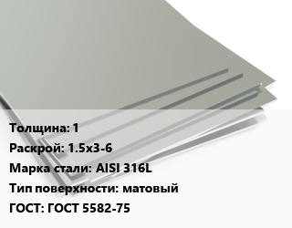 Лист нержавеющий 1 1.5х3-6 Сталь: AISI 316L Тип:матовый ГОСТ 5582-75