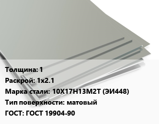 Лист нержавеющий 1 1х2.1 Сталь: 10Х17Н13М2Т (ЭИ448) Тип:матовый ГОСТ 19904-90