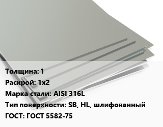 Лист нержавеющий 1 1х2 Сталь: AISI 316L Тип:SB, HL, шлифованный ГОСТ 5582-75, шт, в пленке цена от 5 282 Р / т, где купить, условия доставки в Гомеле и Гомельской области