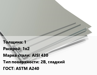 Лист нержавеющий 1 1х2 Сталь: AISI 430 Тип:2B, гладкий ASTM A240