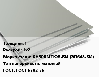 Лист нержавеющий 1 1х2 Сталь: ХН50ВМТЮБ-ВИ (ЭП648-ВИ) Тип:матовый ГОСТ 5582-75 цена от 310 250 Р / т, где купить, условия доставки в Гомеле и Гомельской области