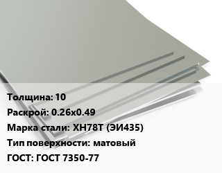Лист нержавеющий 10 0.26х0.49 Сталь: ХН78Т (ЭИ435) Тип:матовый ГОСТ 7350-77