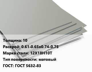 Лист нержавеющий 10 0.61-0.65х0.74-0.75 Сталь: 12Х18Н10Т Тип:матовый ГОСТ 5632-83