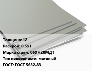 Лист нержавеющий 12 0.5х1 Сталь: 06ХН28МДТ Тип:матовый ГОСТ 5632-83, по запросу цена от 2 125 000 Р / т, где купить, условия доставки в Гомеле и Гомельской области