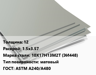 Лист нержавеющий 12 1.5х3.57 Сталь: 10Х17Н13М2Т (ЭИ448) Тип:матовый ASTM A240/A480