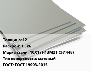 Лист нержавеющий 12 1.5х6 Сталь: 10Х17Н13М2Т (ЭИ448) Тип:матовый ГОСТ 19903-2015