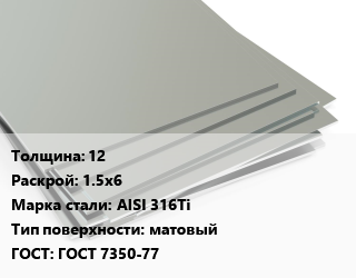 Лист нержавеющий 12 1.5х6 Сталь: AISI 316Ti Тип:матовый ГОСТ 7350-77