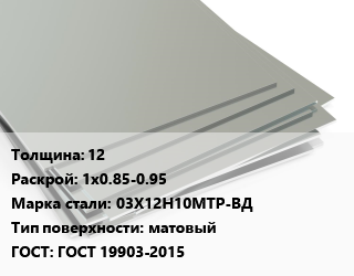 Лист нержавеющий 12 1х0.85-0.95 Сталь: 03Х12Н10МТР-ВД Тип:матовый ГОСТ 19903-2015
