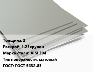 Лист нержавеющий 2 1.25хрулон Сталь: AISI 304 Тип:матовый ГОСТ 5632-83