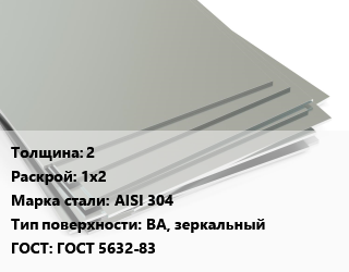 Лист нержавеющий 2 1х2 Сталь: AISI 304 Тип:BA, зеркальный ГОСТ 5632-83