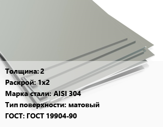 Лист нержавеющий 2 1х2 Сталь: AISI 304 Тип:матовый ГОСТ 19904-90