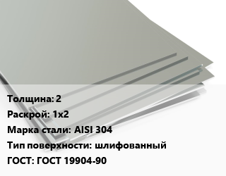 Лист нержавеющий 2 1х2 Сталь: AISI 304 Тип:шлифованный ГОСТ 19904-90