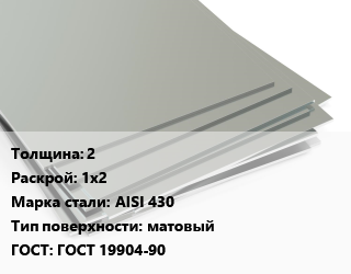 Лист нержавеющий 2 1х2 Сталь: AISI 430 Тип:матовый ГОСТ 19904-90, шт, х/к цена от 13 641 Р / т, где купить, условия доставки в Гомеле и Гомельской области