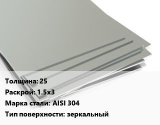 Лист нержавеющий 25 1.5х3 Сталь: AISI 304 Тип:зеркальный