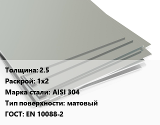Лист нержавеющий 25 1х2 Сталь: AISI 304 Тип:матовый EN 10088-2