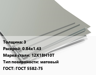 Лист нержавеющий 3 0.84х1.43 Сталь: 12Х18Н10Т Тип:матовый ГОСТ 5582-75