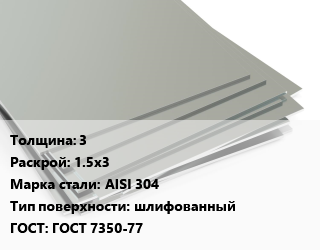 Лист нержавеющий 3 1.5х3 Сталь: AISI 304 Тип:шлифованный ГОСТ 7350-77
