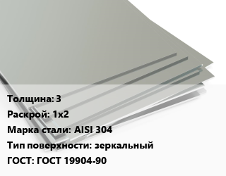 Лист нержавеющий 3 1х2 Сталь: AISI 304 Тип:зеркальный ГОСТ 19904-90