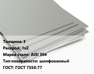 Лист нержавеющий 3 1х2 Сталь: AISI 304 Тип:шлифованный ГОСТ 7350-77