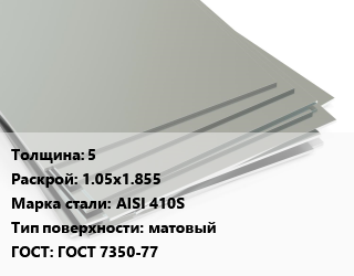 Лист нержавеющий 5 1.05х1.855 Сталь: AISI 410S Тип:матовый ГОСТ 7350-77
