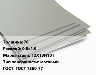 Лист нержавеющий 70 0.8х1.9 Сталь: 12Х18Н10Т Тип:матовый ГОСТ 7350-77
