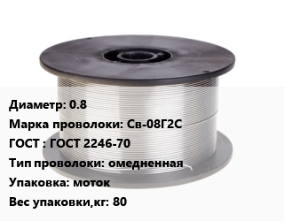 Проволока сварочная 0.8 Сталь: Св-08Г2С ГОСТ: ГОСТ 2246-70 омедненная моток 80